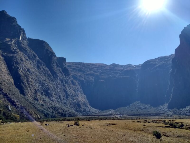 On arrival into San Isidro you’ll trek for a couple of hours along track until reaching the peaceful and enclosed pampa of Corralpampa. Here cows graze nearby a small fresh stream with Inca Terraces in the background. Here we’ll set-up camp, to allow for acclimatisation, enjoying some traditional local meals prepared by our crew.