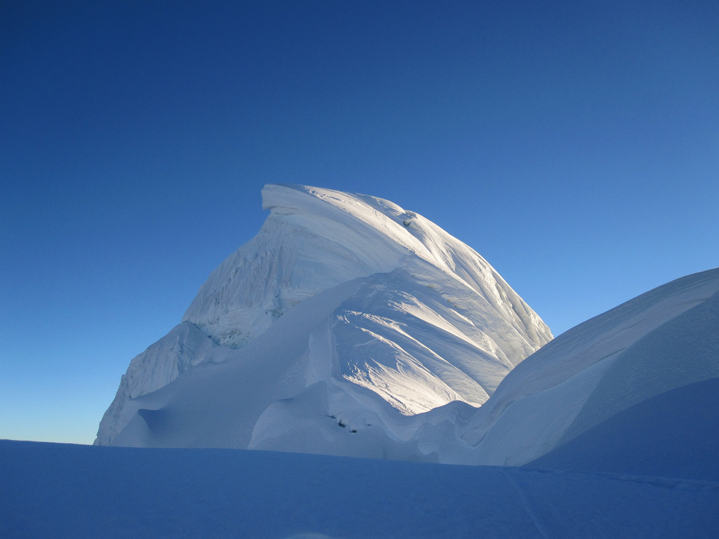 Beginning the ascent at 3:00 am crossing some moraines until we reach the glacier, then you’ll pass through slopes of (35 – 40 °) of inclination until you summit the Nevado Pisco, where you’ll be able to appreciate magnificent views such as the gigantic peaks of Chacraraju, Artesonraju (paramount), Huandoys, Caraz, Huascaran, Alpamayo and others.